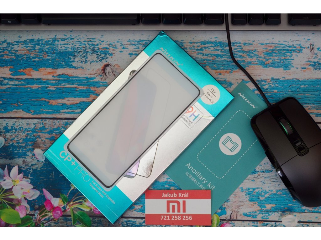 Kvalitní tvrzené sklo od výrobce Nillkin z řady CP+ Pro. Po okrajích skla jsou černé rámečky, díky kterým má sklo větší rozměry. Tloušťka skla je 0,33 mm, výrobcem udávaná minimální tvrdost skla 9H. Oproti levnějšímu 5D sklu od výrobce Mocolo se pohodlněji nanáší a více po něm kloužou prsty.